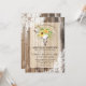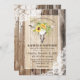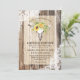 Carteira de convite para o casamento ocidental da Rússia, design com buquê de girassol sobre o crânio de longo curso, com planaltos de madeira em celeiro e rendas brancas e um coração com monograma e girassóis nas costas.
