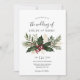 Convide seus convidados para uma celebração acolhedora com este convite de casamento verde de Natal russo. Apresentando folhagem verde-luxuosa, morangos vermelhos, e charme rústico, esta design combina o calor da época de férias com a simplicidade da natureza. Junto com um fundo de marfim neutro ou de tipo kraft, o verde e as bagas criam uma sensação convidativa, de terra. Perfeito para casais que buscam uma vibração festiva, mas de casamento no inverno.