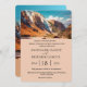 Design apresenta uma elegante paisagem de montanha de aquarela com um layout de texto de estilo moderno. Ver versões de alternativo deste convite e itens de conjunto correspondentes no link de coleção encontrado nesta página.