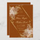 Placa de casamento de na moda moderna laranja com poeira de ouro ligada com um efeito de derramamento de tinta dourada e caligrafia moderna. Clássico e elegante, luxo e convite moderno.