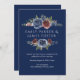 Convite Casamento Russo Floral de Marinho Azul e Brilhante