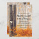 Convites de casamento no outono do país, com uma floresta russa de outono, com folhas vermelhas, laranja e ouro, pássaros prateados, um conto de fadas esculpido na árvore com as iniciais da noiva e do noivo, e um elegante modelo de casamento editável.