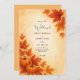 Celebre seu dia especial com este convite para casamento de coloração aquosa com creme-d-água apresentando folhagem macia e vermelha, pequenas abóboras rústicas, e delicadas folhas de maple. Pequenas manchas de ouro acrescentam um confortável toque sazonal, enquanto o design inclui texto editável para que você possa personalizar facilmente todos os detalhes para sua celebração do outono. Perfeito para casamentos rústicos, de países ou de outono.