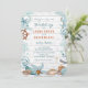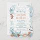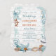 Um convite de casamento de praia náutica feito com mão russa em fundo de madeira