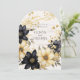 Um convite de casamento ruidoso à terra, com uma coroa floral branca cremosa e preta sobre fundo de grãos de madeira clara, como principal característica desta design, com todos os detalhes no verso. Disponível em impressão, como download digital ou ambos.