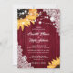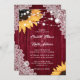 Convite Casamento Rustic Burgundy Wood Lace Sunflower