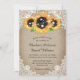 Convites de casamento de girassol rústico elegantes ideais para um país rústico, jardim, quintal ou festa de casamento de celeiro inspirados pelas flores de girassol. Itens correspondentes disponíveis para complementar estes convites de casamento de girassol cônico rústico contendo girassóis em um fundo de burlap distante adornados com rendas florais brancas e luzes de cordas.