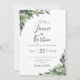 Cores de água úmidas rústicas com folhagem verde, convite para casamento. modelo de tipografia simples, em estilo design.