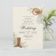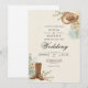 Um design charmoso evocando um tema rústico ocidental com delicados sotaques florais. Possui um chapéu de vaqueiro e bota, perfeito para uma união exterior ou rural. Evoca o calor e uma atmosfera celebratória.