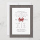 Um convite de casamento temático para o mar rústico, com a ilustração de um caranguejo e uma fronteira de madeira com as intempéries e o reverso. Personalize o texto com detalhes da sua ocasião.