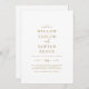 Este guião rústico de ouro ousado, chamado convite de casamento é perfeito para um casamento no campo. O simples e moderno design de ouro e branco apresenta uma única caligrafia manuscrita branca com estilo de boho minimalista contemporâneo. Personalizável em qualquer cor. Mantenha o design mínimo e simplista, como está, ou personalize-o adicionando seus próprios gráficos e trabalhos de arte.