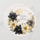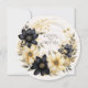 Um convite de casamento ruidoso à terra, com uma coroa floral branca cremosa e preta sobre fundo de grãos de madeira clara, como principal característica desta design, com todos os detalhes no verso. Use a ferramenta design simples se quiser alterar fontes ou cores de fontes. Formato redondo exclusivo.