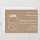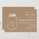 Convite de casamento com fundo de papel kraft castanho rústico com jarro de mason chic e ilustração cardíaca linda e única.