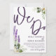 Este é um convite de casamento para caligrafia rustica e elegante "Nós Fazemos" em texto roxo escuro sobre fundo branco, enfeitado com lavandas de aquarela e flores brancas com folhagem. Arte original diretamente do estúdio criado com seu dia especial em mente. Fácil personalizar o texto para criar algo realmente exclusivo.