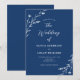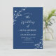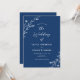 Este belo convite de casamento rústico apresenta um belo fundo azul marinho com flores silvestres desenhadas à mão branca e tipografia elegante. É a design perfeita para um casamento rústico, mas elegante! Consulte a coleção para coordenar itens.