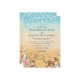 Convites de casamento para destino de praia tropical, com um amarelo-púrpura a azul-d'água, estrelas, conchas, luzes de cordas, dois corações na areia com suas iniciais, e um elegante modelo de casamento que é fácil de personalizar.
