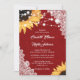 Este romântico convite de casamento floral que apresenta girassóis contra uma burlap e um fundo de renda é perfeito para convidar seus hóspedes para a sua festa de casamento vermelha de campo/quintal/celeiro inspirado pelos girassóis.