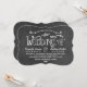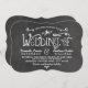Convites de casamento encantadores para um chic-once apresentam fontes de estilo manuscrito, designs de rolagem e sotaques de ampersor que têm uma aparência de giz branco sobre um fundo que tem uma aparência texturizada de conselho preto rústico.