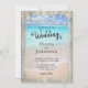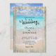 Esta design de casamento da praia rustica apresenta uma bela paisagem marítima com ondas oceânicas rolando na areia, enquadradas com madeira rústica, e decoradas no topo com luzes de cordas. Estes convites de casamento são perfeitos para casamentos de destino, assim como qualquer casamento de praia e de temas costeiros.