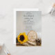 Convide convidados para a sua cerimônia de casamento casual, mas elegante, e a recepção com o convite natural de casamento russo de Sunflower Woodland. Este convite inupcial, personalizado, informal e elegante, para o exterior ou para o interior da floresta, apresenta uma fotografia típica de um girassol amarelo, fatias de madeira com a palavra AMOR, cones de pinheiro castanho e um véu branco com um rastro e fundo branco de cebola.