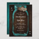 Convite Casamento Rustic Teal Wood Burlap Heart Mason Jar
