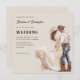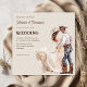 Este design de convite é a combinação perfeita do charme do rancho ocidental e da elegância boho, criando uma apresentação convidativa e memorável para o seu dia especial. A ilustração do casal acrescenta um toque único e animador que os convidados certamente se lembrarão.