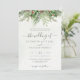 Bonito convite para o casamento, que inclui ilustrações botânicas feitas à mão de cor de água, de verde de inverno, pinheiro e ramos de abeto, cones e bagas sagradas. Escolha perfeita para casamentos temáticos de inverno ou Natal.