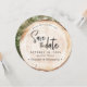 Traga elegância inspirada na natureza para a sua papelaria de casamento com esta fatia rústica de madeira, salve o cartão de data. Projetado com texturas realistas de madeira e caligrafia moderna, este convite é perfeito para casais planejando um celeiro, uma floresta ou um casamento de temas rústicos. O formato circular adiciona uma reviravolta única e memorável que os hóspedes irão valorizar. Com nomes e datas personalizáveis, isso salva o cartão de data balanceando o encm rústico com design sofisticado. Perfeito para celebrações de países, casamentos ao ar livre, ou temas bóquicos, é uma forma na moda para garantir que os entes queridos marquem seus calendários.