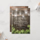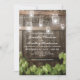 CONVITES DE CASAMENTO COM LÂMPADAS DE JARRO MASON DE BARRIL | Apresentando um fundo de barril de carvalho escuro de celeiro campestre, luzes de corda de jarro mason cintilantes, ano em que ambos se conheceram, folhas de videira com texto moderno de casamento. Encontre outros convites de casamento de madeira em http://www.zazzle.com/special_stationery*