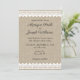 Torne o seu dia especial ainda mais encantador com este modelo de convite de casamento, que apresenta um design rústico elegante. O fundo de sacaria e os delicados detalhes de renda tornam este modelo perfeito para casais que desejam adicionar um toque de charme vintage à sua recepção de casamento. Use este modelo para criar um convite lindo e memorável que define o tom da sua celebração de casamento.