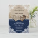 Estes convites românticos para casamento, inspirados por corações de burlap em uma toca e fundo de renda, são perfeitos para convidar seus convidados para sua festa de casamento azul de campo/quintal/quintal/celeiro.