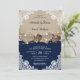 Estes convites românticos para casamento, inspirados por corações de burlap em uma toca e fundo de renda, são perfeitos para convidar seus convidados para sua festa de casamento azul de campo/quintal/quintal/celeiro.