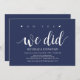 oh sim, fizemos, cartão de convite de recepção de casamento fuga. Este cartão de convite temático de casamento de fuga azul-marinho rústico (você pode personalizar todas as cores) é perfeito para a recepção do seu casamento e festa de celebração pós-casamento. Adicione seus detalhes na fonte / letra correspondente.