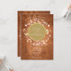 Uma bonito garland ruidosa decorativa circunda uma falsa borda de folha de ouro contendo os nomes de casais felizes. Abaixo, seus detalhes de casamento estão definidos em texto elegante clássico em um fundo de madeira vintage. O reverso apresenta o conjunto de nomes de casais casados dentro de um campo verde rústico correspondente e folha de ouro falso em um fundo de madeira vintage. Projetado por Thisnotme©
