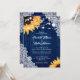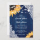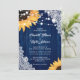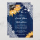 Este elegante e romântico convite para o casamento floral que apresenta girassóis contra madeira e renda é perfeito para convidar seus hóspedes para o seu marinho azul de campo/quintal/festa de casamento de celeiro inspirado pelos girassóis.