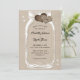 Convite de casamento de pedreiro rústico personalizado com um jarro de pedras e corações de burlap com iniciais em fundo de burlap claro. Personalize facilmente este cartão de casamento rústico com seus detalhes de casamento.