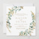 O convite de casamento russo contém folhas falsas de folha de ouro, cor d'água, verde botânico eucalipto e letra chic moderna, elegante e romântico, excelente para casamento rústico moderno, casamento botânico e casamento do boho country. Veja todas as peças correspondentes na coleção.