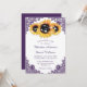 Convites para casamento de girassol rústico e violeta, ideais para um país rústico roxo, jardim, quintal ou festa de casamento de celeiro inspirados em flores de girassol. Itens correspondentes disponíveis para complementar estes convites de casamento rústicos roxos.