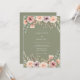 Delicadas flores em tons de rosa, blush e lavanda em aquarela se entrelaçam com folhagem exuberante. Este design encantador evoca um sentimento romântico e natural. A paleta de cores suaves cria uma estética etérea e atemporal para o seu dia especial.
