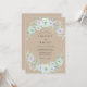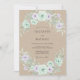 Este design apresenta flores suaves em aquarela em tons de verde limão e lavanda pálida contra um fundo kraft rústico. Rosas delicadas e raminhos de eucalipto luxuriantes criam um sentimento natural e orgânico perfeito para um evento ao ar livre. Os tons suaves e o estilo pictórico evocam uma sensação de elegância serena e boêmia.