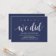 Sim, nós fizemos, cartão de convite para recepção de casamento elopamento. Este cartão de convite temático de casamento elopamento rústico azul-marinho (você pode personalizar todas as cores) é perfeito para a recepção do seu casamento e festa de celebração pós-casamento. Adicione seus detalhes na fonte / letra correspondente.