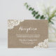 Cartões de Receção de Casamento Rústico de Renda de Estopa Vintage.