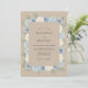 Este design apresenta um fundo bege suave adornado com uma bordadura exuberante de flores em tons suaves em aquarela. Rosas elegantes em azul empoeirado e creme são combinadas com delicadas hortênsias e folhas de eucalipto verde desfiado para um toque romântico. A paleta de bege terroso e azul fresco cria uma atmosfera serena e sofisticada adequada para qualquer estação.