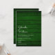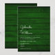 Simples convite de casamento rústico com os nomes de casais felizes em um roteiro elegante acima dos detalhes especiais de casamento em um fundo de madeira verde-esmeralda rústica. O reverso apresenta um fundo de madeira verde-esmeralda rústica correspondente. Projetado por Thisnotme©