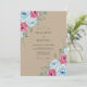 Um fundo bege quente fornece uma base rústica para este vibrante design floral. Rosas fucsias exuberantes e azul-pó criam cantos que chamam a atenção, complementados por folhagens de eucalipto verde suave. Os tons terrosos combinados com flores brilhantes evocam uma atmosfera boêmia encantadora. Perfeito para eventos ao ar livre, este visual botânico destaca a beleza da natureza.