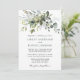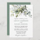 O Cartão de Convite para Casamento de Cores Biológicas Elegantes Modernos inclui folhas de eucalipto, folhagem botânica verde, folhas azuis empoeiradas e outros belos lençóis botânicos. Sage Green Back.