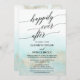 Este cartão de recepção de casamento secreto na praia com aquarela aqua e dourado é perfeito para uma festa pós-casamento secreto em um destino tropical. O design simples e moderno apresenta uma aquarela turquesa, azul-turquesa e azul-claro deslumbrante com um brilho suave dourado que lembra a areia e o mar. É combinado com uma caligrafia elegante e linda. Os cartões de RSVP são vendidos separadamente.