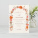 convite com código QR para casamento boho de outono com flores silvestres e elegante letra cursiva em laranja queimada. Florais únicos pintados à mão em aquarela boho chic em um lindo arco floral caprichoso em laranja queimada, roxo, marrom, amarelo, rosa, laranja, terracota e paleta de cores verdes. Modelos fáceis de personalizar, incluindo gerador de código QR para site de casamento e tipografia moderna e elegante em laranja queimada para seus detalhes essenciais de casamento em um fundo bege. Perfeito para um casamento boêmio e caprichoso com tema de jardim no verão, primavera ou outono. Arte original da artista Catherine Sweetman
