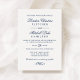 Convide os convidados num estilo atemporal com este convite de casamento com nomes em letra cursiva elegante e tipografia serifa refinada num fundo branco limpo com texto azul-marinho clássico. O layout minimalista parece formal, tradicional e fácil de personalizar para qualquer local. Perfeito para cerimónias na igreja e celebrações sofisticadas.