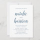Apresentamos nosso convite de casamento Simple Modern Script, elegante e sofisticado, onde a simplicidade encontra a sofisticação para definir o tom do seu dia especial. Com os nomes do casal elegantemente exibidos em uma caligrafia azul-marinho elegante contra um fundo branco imaculado, este convite exala charme contemporâneo. Os detalhes do casamento são apresentados em letras azuis-marinho limpas e minimalistas, garantindo clareza e sofisticação. Perfeito para casamentos informais em qualquer estação, este convite oferece elegância atemporal com um toque moderno. Faça uma declaração e convide seus convidados a celebrar seu amor com nosso convite de casamento Simple Modern Script.